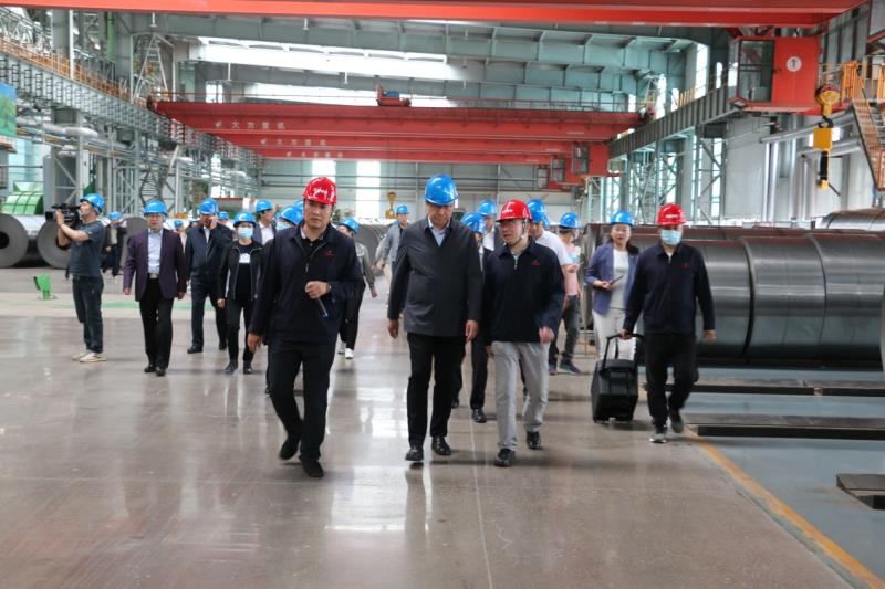 5月21日上午,觀摩團(tuán)一行在市委常委、統(tǒng)戰(zhàn)部部長(zhǎng)孟和巴特爾的帶領(lǐng)下來到我公司。公司總經(jīng)理佟國(guó)山、黨委書記劉欣、黨委副書記李曉杰在現(xiàn)場(chǎng)迎接,并陪同觀摩團(tuán)參觀了公司年產(chǎn)200萬噸冷軋鍍鋅一期項(xiàng)目。劉欣書記代表公司詳細(xì)介紹了該項(xiàng)目的生產(chǎn)工藝流程,讓觀摩團(tuán)成員了解了黑色的熱軋帶鋼蛻變?yōu)楣饬恋腻冧\帶鋼的過程。