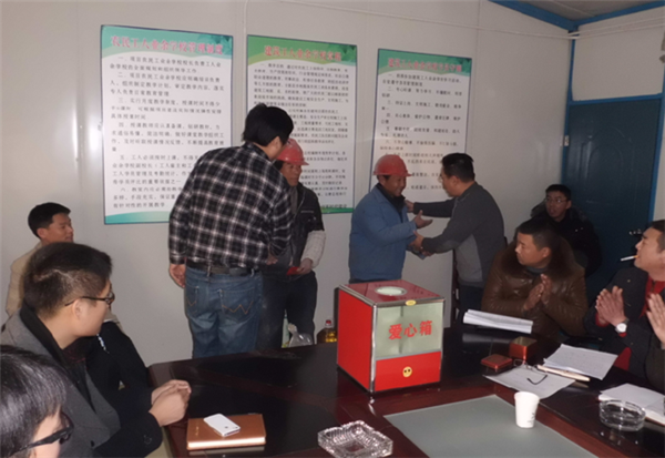 園區(qū)公舍三期西楚金地和白領(lǐng)公寓項(xiàng)目是今年園區(qū)的重點(diǎn)工程,為創(chuàng)建文明工地,構(gòu)建和諧園區(qū),營(yíng)造關(guān)愛(ài)幫扶、互助互濟(jì)的良好氛圍,自開工以來(lái),項(xiàng)目部辦公室就設(shè)立了募捐箱,并在元旦即將到來(lái)之際,用募集到的善款幫助工地上生活困難的建筑工人,讓困難工人群體感受到社會(huì)的溫暖和正能量,增強(qiáng)其歸屬感,在工地、在園區(qū)也能感受到家的溫馨。