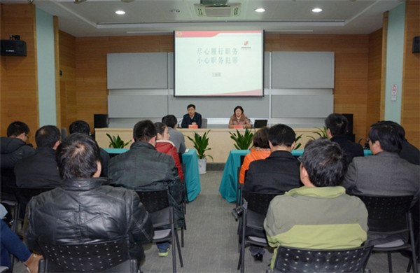 12月26日,開發(fā)公司邀請宿城區(qū)檢察院預防職務(wù)犯罪科科長王麗娟作《盡心履行職務(wù),小心職務(wù)犯罪》專題講座,園區(qū)黨工委委員、管委會副主任、開發(fā)公司總裁陸志剛參加講座。