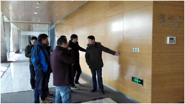 劉建華向考察人員詳細介紹了綠化工程、幕墻工程、木飾面裝修及吊頂工程等施工要點,并結(jié)合公司部分代建項目,系統(tǒng)分析,指出不足。他表示,建筑技術(shù)發(fā)展日新月異,工程從業(yè)人員必須不斷加強學習、總結(jié)經(jīng)驗,才能不斷提高工程管理水平。