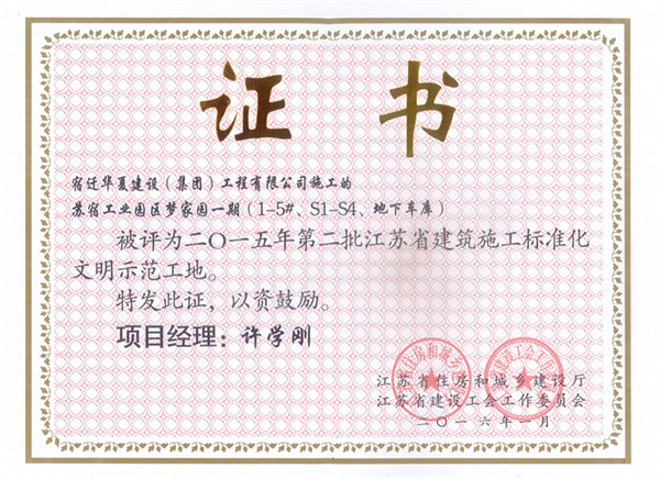 近日,夢家園?融園一期工程獲評“2015年第二批江蘇省建筑施工標準化文明示范工地”稱號。