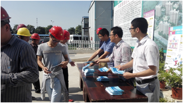 工作人員向參加交底活動的工人發(fā)放安全生產(chǎn)宣傳手冊,并向工人展示了精心制作的安全生產(chǎn)掛圖。夢家園施工人員踴躍參加,活動現(xiàn)場反應(yīng)熱烈,本次活動起到良好的宣傳教育作用。
