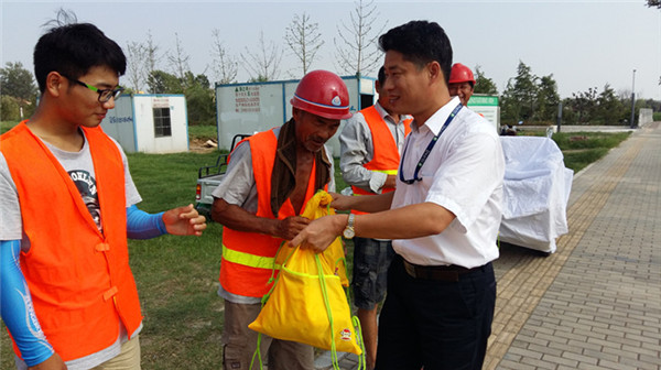 7月28日下午,開(kāi)發(fā)公司副總裁劉建華帶領(lǐng)公司相關(guān)部門(mén)負(fù)責(zé)人來(lái)到公司代建項(xiàng)目工地,現(xiàn)場(chǎng)慰問(wèn)了奮戰(zhàn)在高溫一線(xiàn)的企業(yè)員工和建筑工人,并親自給他們遞上了毛巾、肥皂、清涼油等防暑降溫物品。