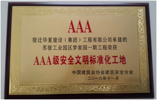 夢(mèng)家園獲得“AAA級(jí)安全文明標(biāo)準(zhǔn)化工地”稱號(hào)
