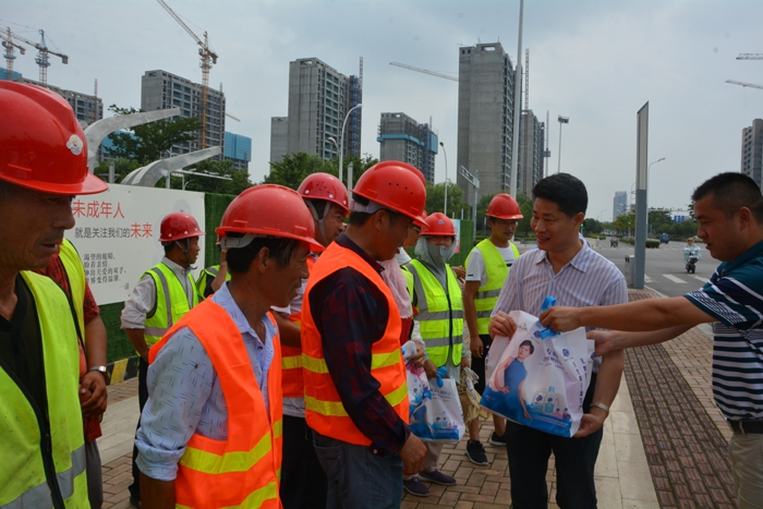7月26日上午,開發(fā)公司副總裁劉建華帶隊(duì)慰問市政工程項(xiàng)目現(xiàn)場工人,給他們送去毛巾、香皂、洗發(fā)水等防暑降溫用品,感謝他們對園區(qū)市政工程的建設(shè)作出的貢獻(xiàn)。