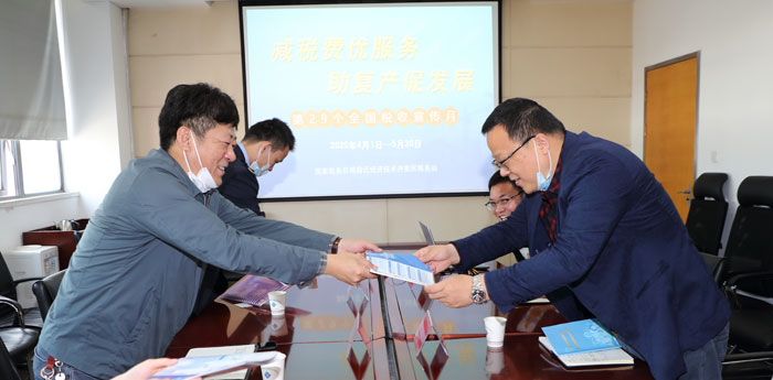 開發(fā)公司財務(wù)總監(jiān)黃健向張局長一行介紹了公司的主營業(yè)務(wù)開展情況, 雙方就疫情對企業(yè)發(fā)展帶來的影響進(jìn)行了深入探討。通過座談,既加深了公司對疫情期間稅費政策的學(xué)習(xí),也增進(jìn)了稅務(wù)部門對公司疫情對企業(yè)帶來的影響全面了解。此次調(diào)研,為公司帶來了自行編制的《新冠肺炎疫情防控稅收優(yōu)惠政策及熱點問題匯編》手冊及個人所得稅匯算清繳指南等政策指導(dǎo)材料。