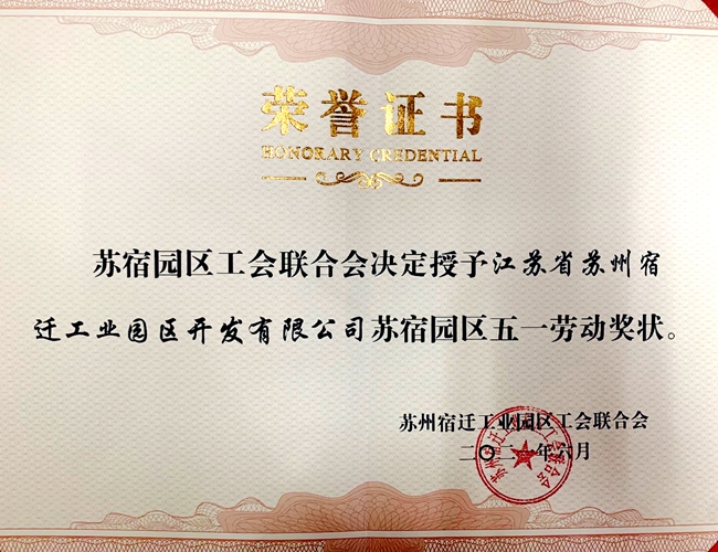 開發(fā)公司榮獲“蘇宿園區(qū)五一勞動獎狀”
