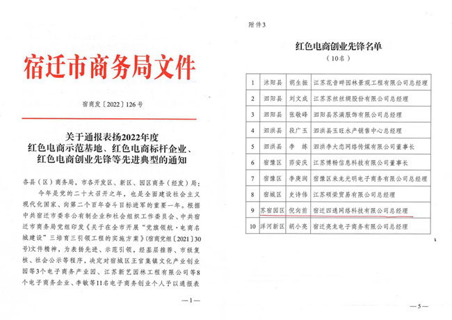 黨的二十大召開(kāi)之年,市商務(wù)局為擦亮“電商名城”牌子,激發(fā)“電商名城”發(fā)展新動(dòng)能,12月15日,組織紡織服裝產(chǎn)業(yè)鏈黨建工作暨“黨旗領(lǐng)航·電商名城建設(shè)”推進(jìn)會(huì)。園區(qū)企業(yè)家四通科技董事長(zhǎng)倪向前獲得“紅色電商創(chuàng)業(yè)先鋒”榮譽(yù)稱(chēng)號(hào)。