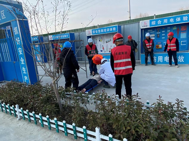 為消除事故隱患,筑牢施工現(xiàn)場(chǎng)的安全防線,提升施工現(xiàn)場(chǎng)安全生產(chǎn)及事故應(yīng)急響應(yīng)及處置能力,2月16日下午,青年公寓一期項(xiàng)目在工地辦公區(qū)北側(cè)開(kāi)展了2023年度高處墜落及觸電傷害應(yīng)急演練,項(xiàng)目各方共計(jì)約40余人參與了本次演練。