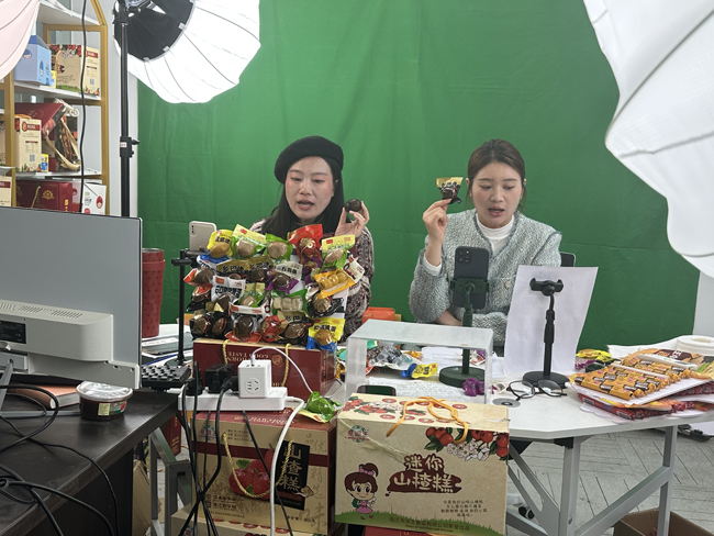 當(dāng)天,電商產(chǎn)業(yè)園內(nèi)的“直播大棚”人氣爆棚。主播們在鏡頭前與消費者展開互動,充滿激情地介紹各類商品,通過生動的語言和直觀的展示,將商品的特點和優(yōu)勢傳達給觀眾,引導(dǎo)他們進行購買,主播們還以抽獎、送禮等方式增加直播的趣味和互動,吸引更多觀眾的參與。