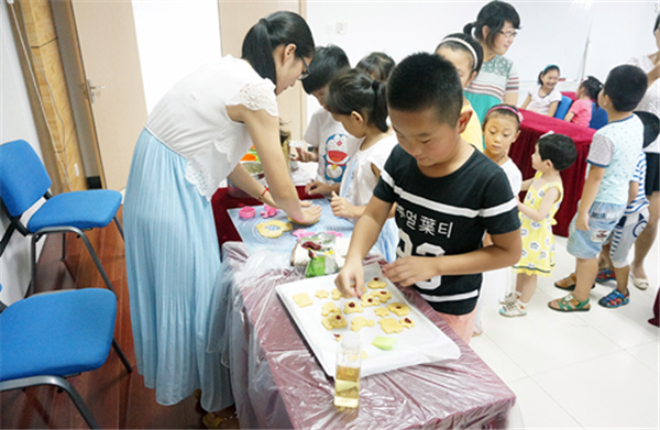 園區(qū)居民徐老師也加入社工的隊伍,她說:一個孩子要帶,一群孩子一樣帶,社區(qū)提供這樣的平臺,正好讓她這個化學老師學有所用、用有所長。徐老師與社工為孩子們精心設(shè)計了手工制作、創(chuàng)意畫板、親子DIY、餅干烘焙、安全自護、戶外探險等課程,不斷灌輸“小候鳥”們各種知識與道理,使孩子在收獲快樂的同時健康成長,也給“小候鳥”留下一段難忘的暑期生活記憶。