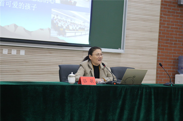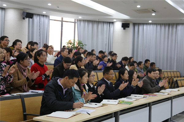駱敏從“做教師的意義、如何成為學(xué)生心目中的好老師和如何成為大家心中的好老師”三個(gè)方面給老師們上了一堂別開(kāi)生面的專業(yè)發(fā)展課。駱敏指出,教師應(yīng)該具有高尚奉獻(xiàn)、完善自我的意識(shí),特別要從細(xì)節(jié)方面、從學(xué)生的角度思考,開(kāi)啟通向優(yōu)秀教師的通道。駱敏認(rèn)為學(xué)生心目中的好老師應(yīng)該是一名演說(shuō)家、幽默大師,具有獨(dú)特的教學(xué)藝術(shù),對(duì)孩子能夠真誠(chéng)贊美、懂得尊重學(xué)生、真心關(guān)愛(ài)學(xué)生。作為好老師,應(yīng)該修德、修志、修學(xué)、修能、修性,有欣賞的眼光,感恩的心態(tài)。